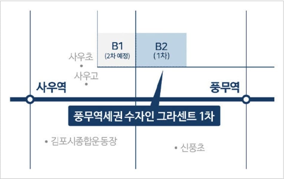 풍무수자인그라센트 2차는 경기도 김포시 풍무역세권 도시개발사업 내 B1블록에 조성되는 브랜드 아파트로, 우수한 입지와 쾌적한 주거환경을 동시에 갖춘 신축 분양 단지입니다. 김포 풍무역을 중심으로 형성되는 핵심 주거벨트에 위치해 실수요자는 물론 투자자들의 관심도 꾸준히 이어지고 있습니다.